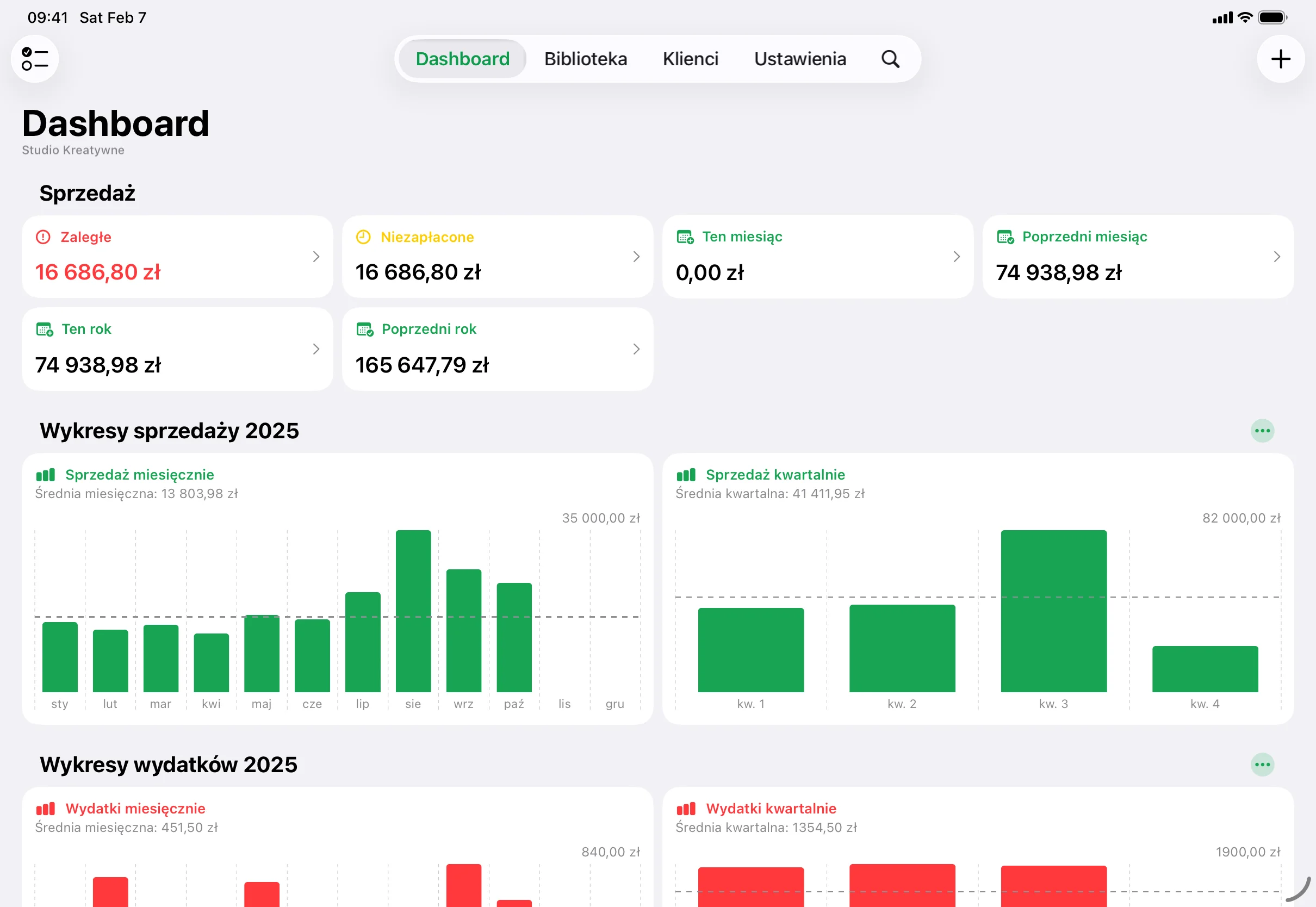 Uzyskaj wgląd w przychody, zaległe płatności i trendy biznesowe.